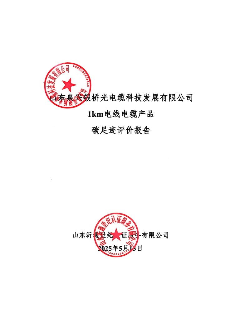 山东全兴银桥光电缆科技发展有限公司1km电线电缆产品碳足迹评价报告