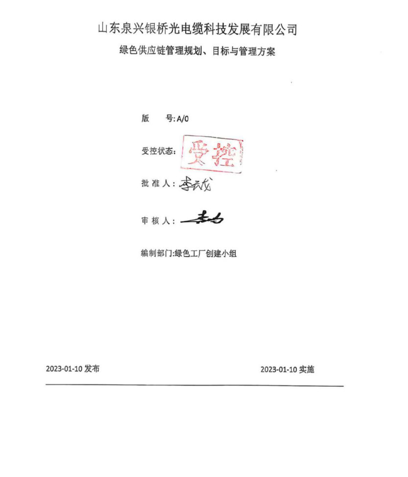 绿色供应链管理规划、目标与管理方案